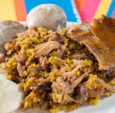 La lechona colombiana es un plato emblemático que ocupa un lugar especial en la gastronomía del país, siendo especialmente popular durante festividades y celebraciones. Este manjar consiste en un cerdo entero, generalmente un lechón de aproximadamente cuatro meses, que es deshuesado y luego relleno con una mezcla de arroz, arvejas, especias, y a menudo carne de cerdo adicional. El resultado es un platillo sabroso que combina la textura crujiente de la piel del cerdo con el relleno tierno y aromático, ofreciendo una experiencia culinaria única.